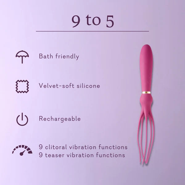 Give “work from home” a whole new meaning with this dual-ended, dual-motor vibrator. Let the vibrating shaft stimulate internally or hand it off to a partner for a little team effort. With vibration on, the silicone tassels can tease anywhere on the body. No matter what mood you’re in, grab this versatile toy and put in overtime on pleasure.