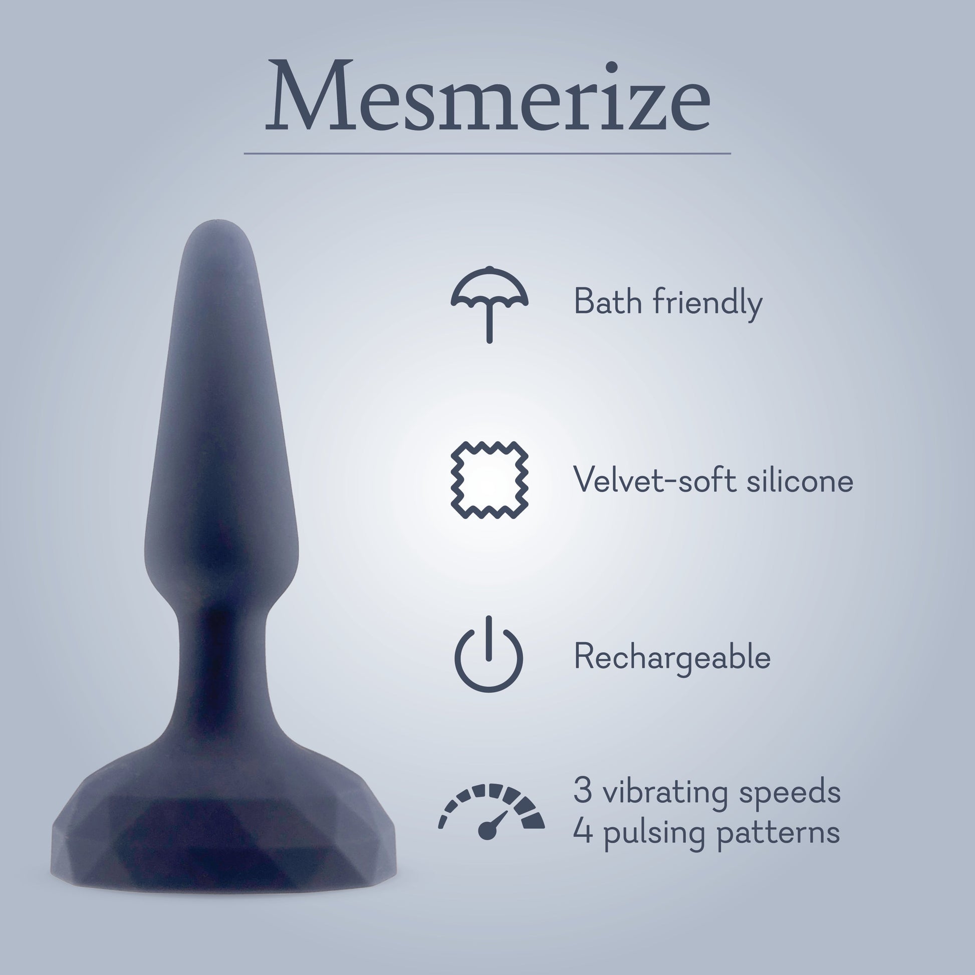 Unlock new pleasures with Mesmerize, an erotic booty massager with 7 satisfying functions. Featuring those powerful vibrations you know and love, this silky silicone vibrator features a tapered, flexible shaft designed to move with your body while heightening backdoor pleasure.